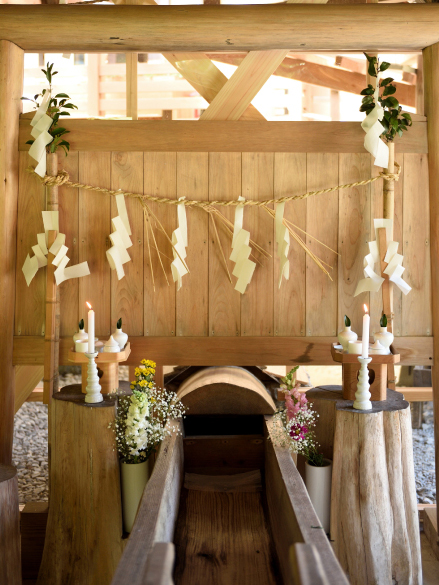 榊の葉を流しながら、ご先祖様がその想いを受け取ることができるように、また、禍や穢れを祓い清めていただくよう御祈祷いたします。