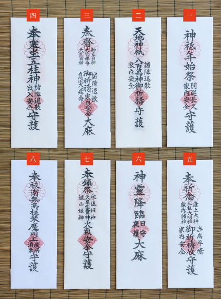 それぞれのお札に、意味と貼る位置が定められています。